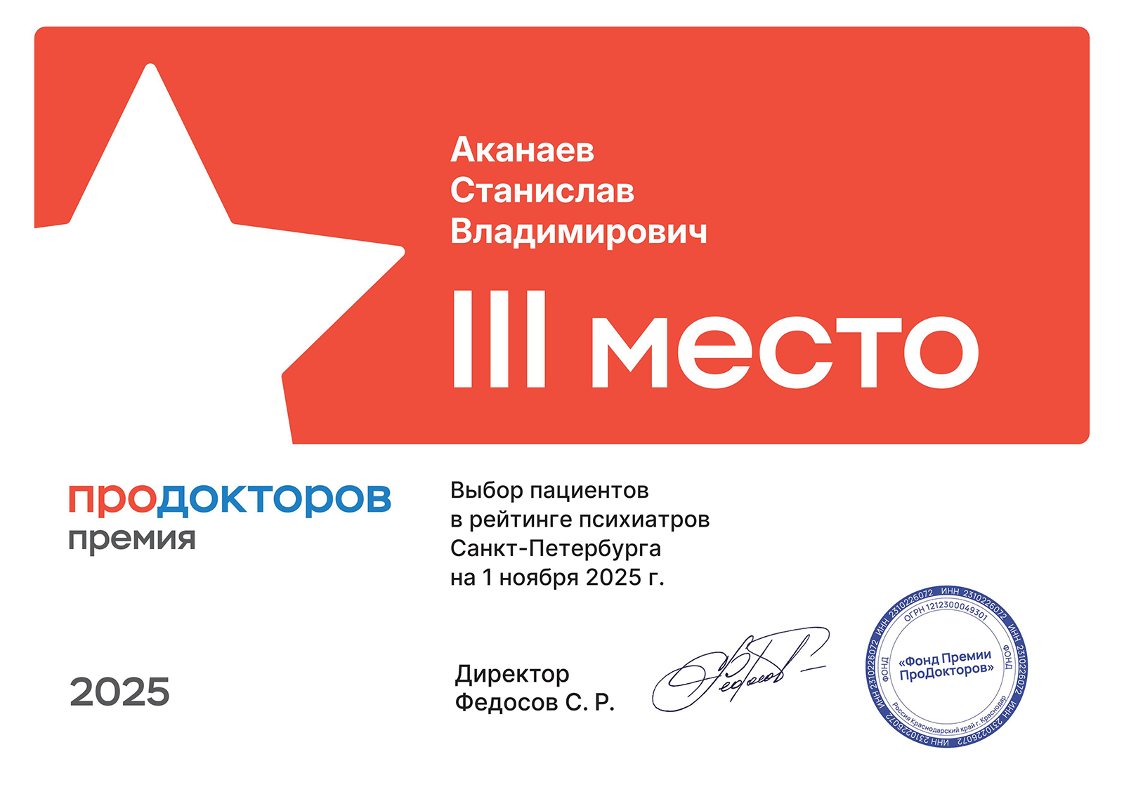 — 3 место в рейтинге психиатров